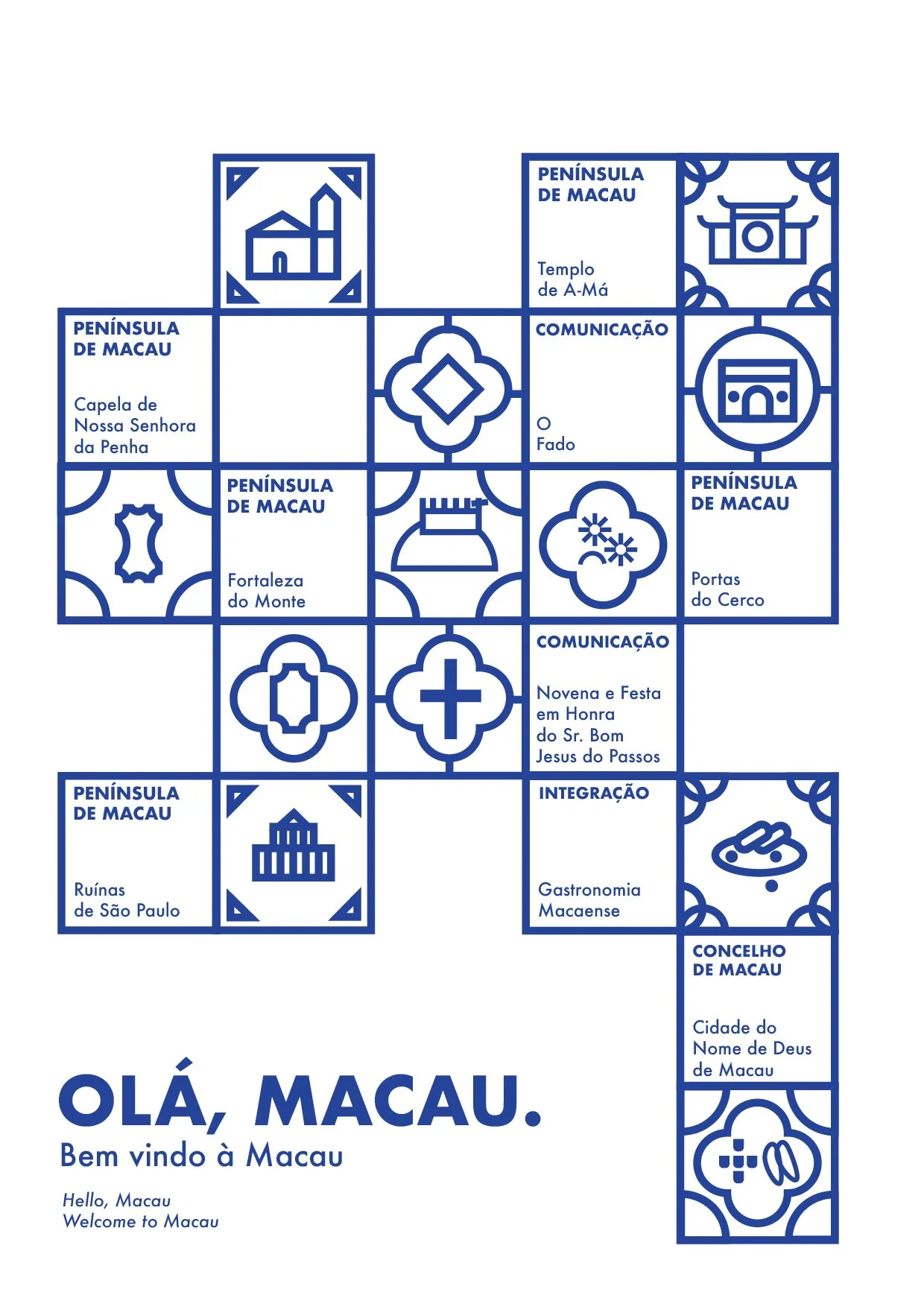 inspired by the azulejos (portuguese tiles), reflecting the history and the cultural integration of the city during portugese occupation, this project is to create a visual image for the city of Macau.